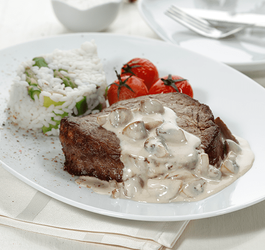 sirva este molho sobre a carne acompanhando com o arroz de espargos e os